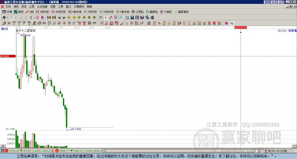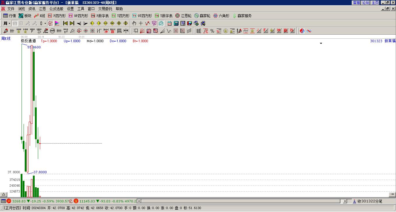 新萊福處于贏家江恩多頭次主線形態(tài),1月27日發(fā)出江恩筑底信號后,經(jīng)過3日,今日形成短期筑頂信號,短期多頭趨勢已被破壞,中期多頭趨勢延續(xù),但長期處于回調中。新萊福今日跳空低開,截止目前股價依然下跌呈光頭