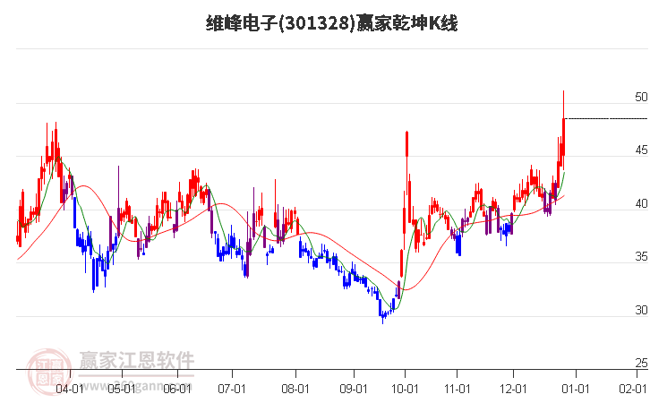 目前301328維峰電子以穿頭破腳中陽線收盤,近期時間窗口為:1月20日