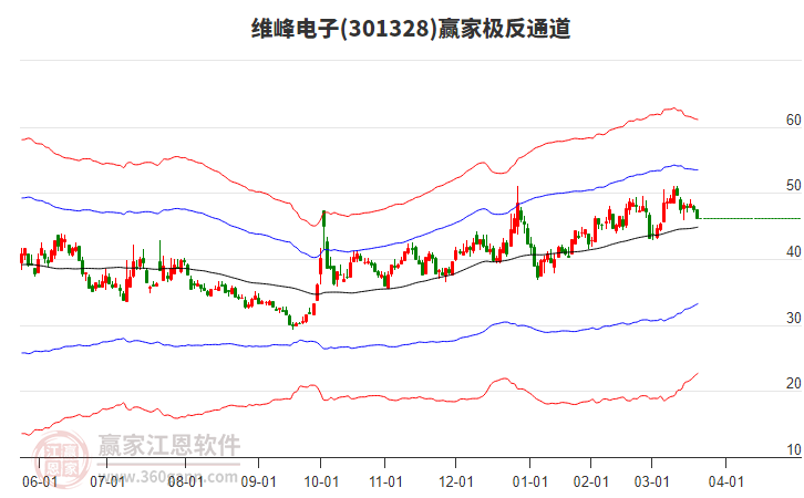 依據贏家江恩系統趨勢工具極反通道分析判斷維峰電子301328運行在生命線以上強勢區(qū)域,根據規(guī)則該股可短線、波段結合操作;結合物極必反的原理通過分鐘圖做盤中差價,應用口訣是:生命線上強勢走,生命線下難抬頭;紅黃兩條外軌線,壓力支撐顯勢頭。