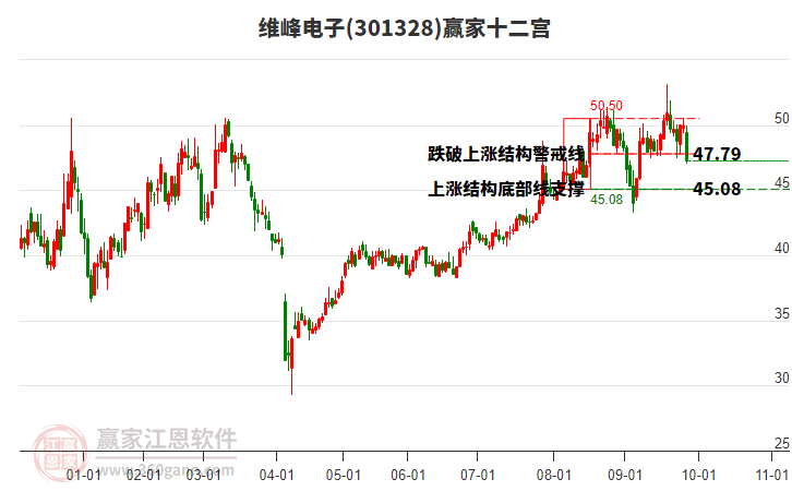 9月30日維峰電子(301328)收盤價為47.7,微跌1.75%,近期高點是53.13元,時間是2025年9月18日,到現在已經下跌8天,維峰電子(301328)已經從53.13元回調了5.43元,