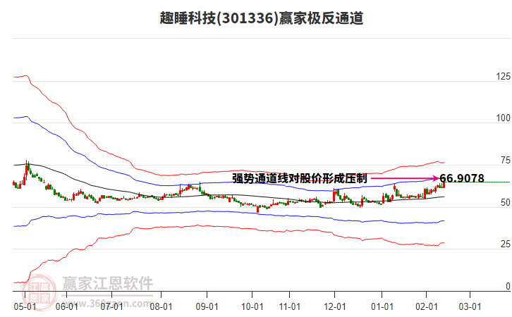 今日301336趣睡科技最高價(jià)64.0上穿了贏家極反通道工具藍(lán)色外軌線,受到藍(lán)色外軌線強(qiáng)力壓制,最終收盤停留在在藍(lán)色外軌線與生命線上方的強(qiáng)勢(shì)通道區(qū)域。301336趣睡科技近10個(gè)交易日漲幅16.86%