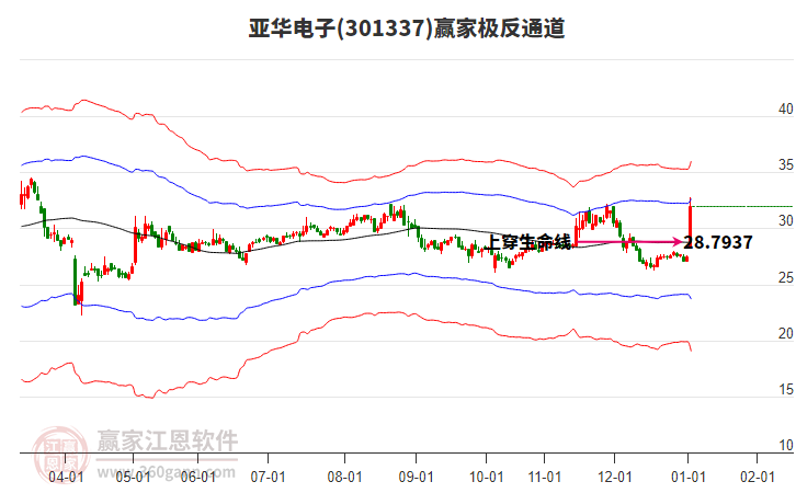 1月5日亞華電子最高價32.8上穿了贏家極反通道工具藍色外軌線,受到藍色外軌線強力壓制,最終收盤停留在在藍色外軌線與生命線上方的強勢通道區(qū)域。亞華電子近10個交易日漲幅16.64%。