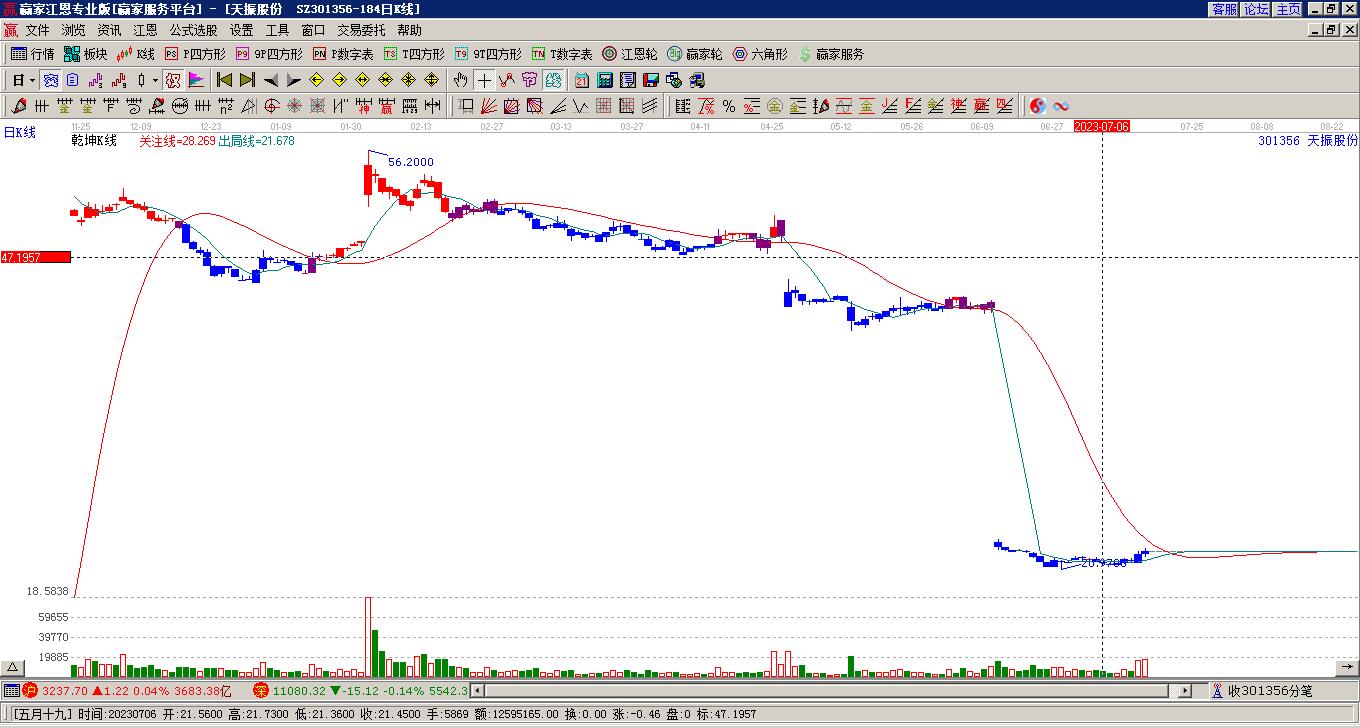 目前天振股份最高價22.75上穿了贏家極反通道工具生命線,受到生命線強力壓制,最終收盤停留在在生命線與藍色下軌線上方的弱勢通道區(qū)域。天振股份近10個交易日漲幅2.34%。
