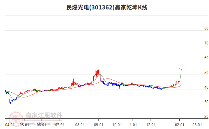 民爆光電(301362)目前一字板漲停,與所屬行業(yè)概念下股票形成聯(lián)動效應(yīng)。民爆光電今日跳空高開后截止目前K線為一字板漲停,目前股價高于昨日收盤價,呈現(xiàn)上漲趨勢。