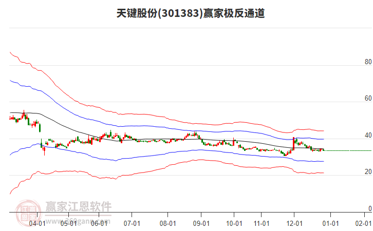 依據(jù)贏家江恩系統(tǒng)趨勢工具極反通道分析判斷天鍵股份301383運(yùn)行在生命線以上強(qiáng)勢區(qū)域,根據(jù)規(guī)則該股可短線、波段結(jié)合操作;結(jié)合物極必反的原理通過分鐘圖做盤中差價,應(yīng)用口訣是:生命線上強(qiáng)勢走,生命線下難抬頭;紅黃兩條外軌線,壓力支撐顯勢頭。