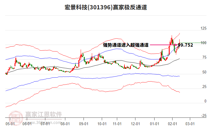 當(dāng)天宏景科技301396最高價(jià)95.56挑戰(zhàn)了贏家極反通道工具藍(lán)色外軌線,受到藍(lán)色外軌線強(qiáng)力壓制,最終收盤停留在在藍(lán)色外軌線與生命線上方的強(qiáng)勢通道區(qū)域。宏景科技301396近10個(gè)交易日漲幅14.42