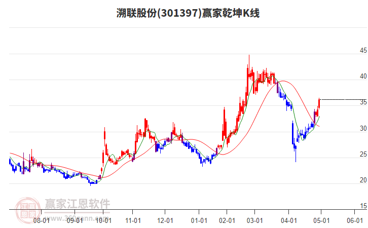 301397溯聯(lián)股份今日低開收陽,收盤價為35.16,相較于昨日陰線收盤價33.01,上漲2.15元,小幅上漲6.51%,近兩日收一陰一陽倆根K線,近兩日呈現(xiàn)上漲趨勢,近半個月股價呈上漲走向,當(dāng)天K線