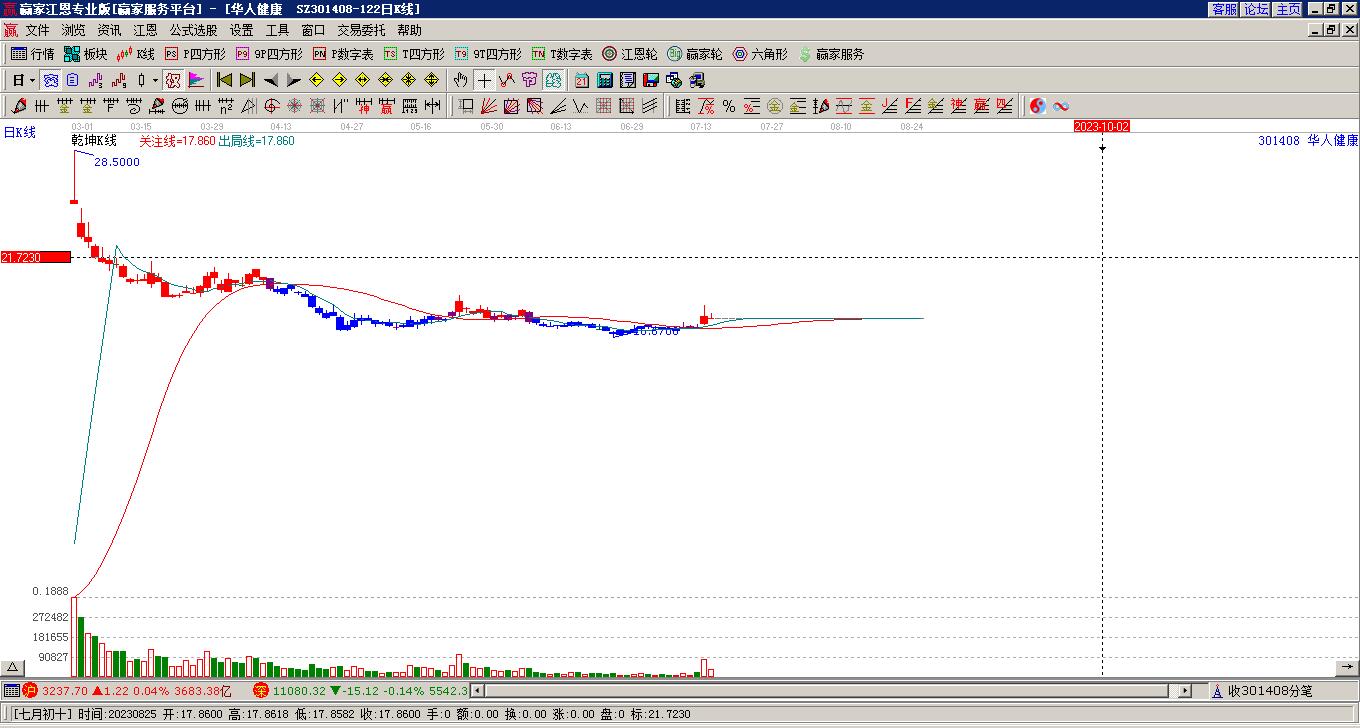 華人健康301408當(dāng)前股價(jià)接近江恩輪中輪內(nèi)循環(huán)重要度數(shù):180度 近8個(gè)交易日漲幅60.34%