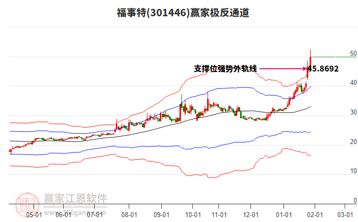 福事特301446最高價挑戰(zhàn)上方紅色外軌線 小幅上漲2.22%