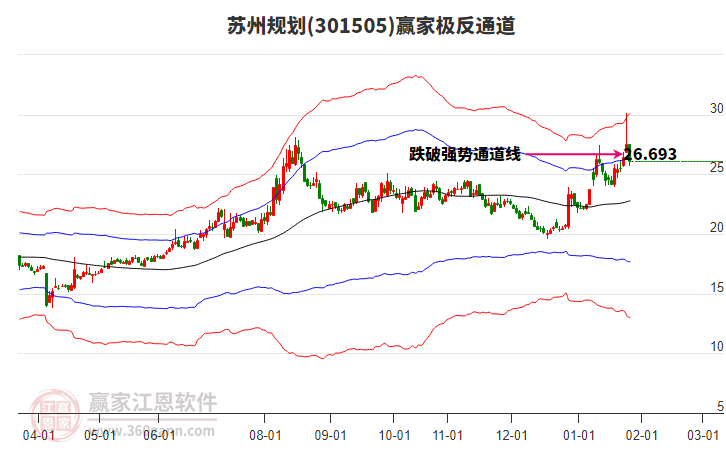 周一301505蘇州規(guī)劃最高價(jià)30.1挑戰(zhàn)了贏家極反通道工具上方紅色外軌線,受到上方紅色外軌線強(qiáng)力壓制,最終收盤停留在在上方紅色外軌線與藍(lán)色外軌線上方的超強(qiáng)通道區(qū)域。301505蘇州規(guī)劃近10個(gè)交易日