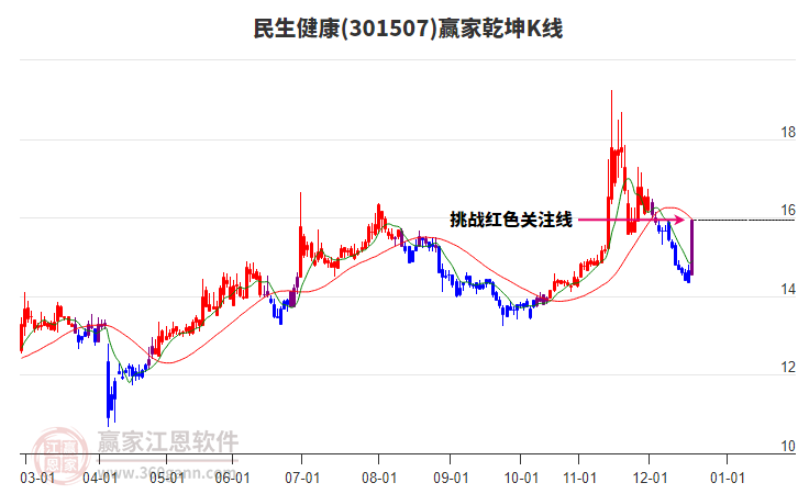 民生健康(301507)處于贏家江恩多頭主線形態(tài),12月1日發(fā)出江恩筑頂信號后,經(jīng)過25日,今日再次發(fā)出江恩底分型并發(fā)出江恩筑底信號,中期雖然處于回調(diào)中,但長期多頭趨勢延續(xù)。民生健康今日低開,截止目前