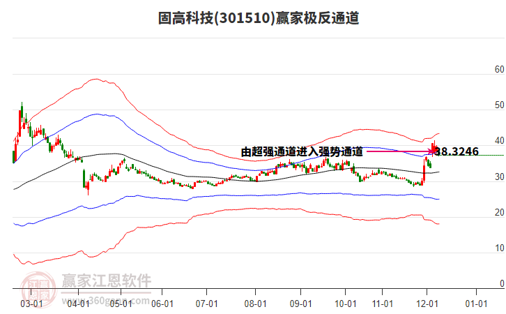 12月30日301510固高科技最高價(jià)39.19上穿了贏家極反通道工具藍(lán)色外軌線,受到藍(lán)色外軌線強(qiáng)力壓制,最終收盤停留在在藍(lán)色外軌線與生命線上方的強(qiáng)勢(shì)通道區(qū)域。301510固高科技近10個(gè)交易日漲幅1