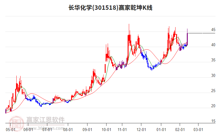 301518長華化學(xué)低開收陽線,周四漲幅9.46%