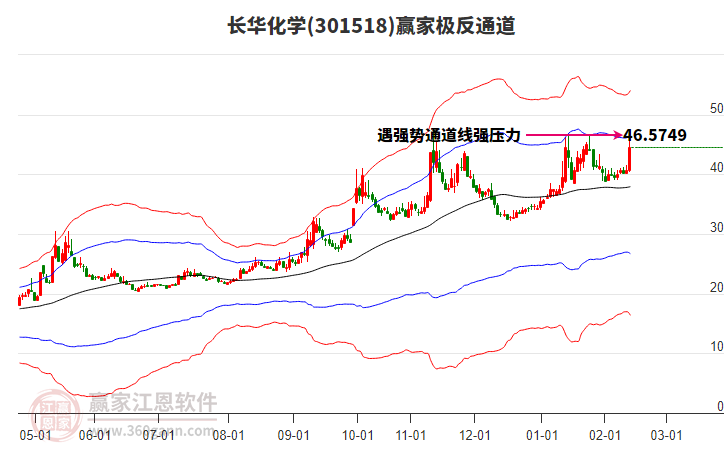 依據(jù)贏家江恩系統(tǒng)趨勢工具極反通道分析判斷長華化學(xué)301518運(yùn)行在生命線以下弱勢區(qū)域,根據(jù)規(guī)則該股短線輕倉參與,股價跌至弱勢外軌線后波段再結(jié)合其它工具信號建倉。應(yīng)用口訣是:生命線上強(qiáng)勢走,生命線下難抬頭;紅黃兩條外軌線,壓力支撐顯勢頭。