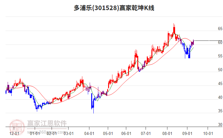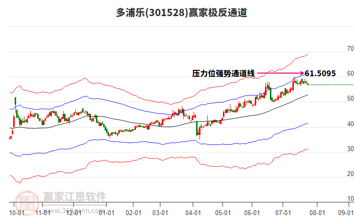 今天多浦樂最高價76.05挑戰(zhàn)了贏家極反通道工具藍色外軌線,受到藍色外軌線強力壓制,最終收盤停留在在藍色外軌線與生命線上方的強勢通道區(qū)域。多浦樂近10個交易日漲幅8.43%。