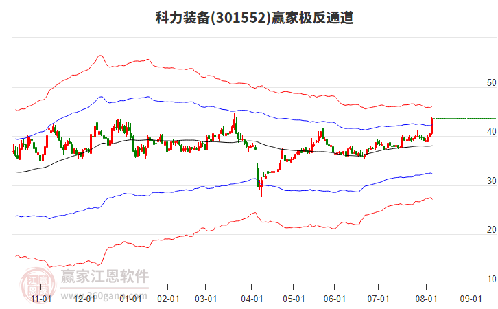 依據(jù)贏家江恩系統(tǒng)趨勢工具極反通道分析判斷科力裝備301552運行在生命線以下弱勢區(qū)域,根據(jù)規(guī)則該股短線輕倉參與,股價跌至弱勢外軌線后波段再結(jié)合其它工具信號建倉。應(yīng)用口訣是:生命線上強勢走,生命線下難抬頭;紅黃兩條外軌線,壓力支撐顯勢頭。