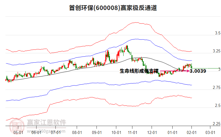 依據(jù)贏家江恩系統(tǒng)趨勢(shì)工具極反通道分析判斷首創(chuàng)環(huán)保600008運(yùn)行在生命線以下弱勢(shì)區(qū)域,根據(jù)規(guī)則該股短線輕倉參與,股價(jià)跌至弱勢(shì)外軌線后波段再結(jié)合其它工具信號(hào)建倉。應(yīng)用口訣是:生命線上強(qiáng)勢(shì)走,生命線下難抬頭;紅黃兩條外軌線,壓力支撐顯勢(shì)頭。