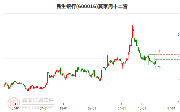 600016民生銀行根據(jù)贏家江恩極反通道趨勢(shì)工具展示,上方壓力位4.3656,下方支撐位4.0496。600016民生銀行處于贏家江恩多頭次主線形態(tài),10月29日發(fā)出江恩筑底信號(hào)后,經(jīng)過35日,今日形