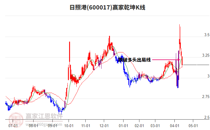 600017日照港在高點3.3后,回調了0.31元,跌破波段百分比工具支撐位3.01元