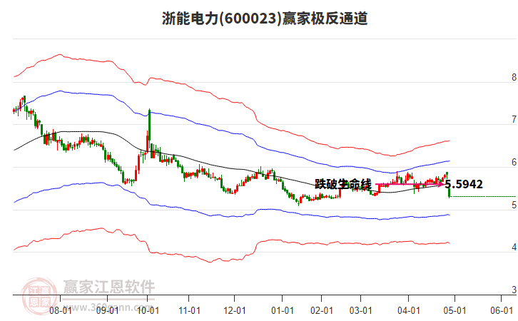 依據(jù)贏家江恩系統(tǒng)趨勢工具極反通道分析判斷浙能電力600023運行在生命線以下弱勢區(qū)域,根據(jù)規(guī)則該股短線輕倉參與,股價跌至弱勢外軌線后波段再結(jié)合其它工具信號建倉。應(yīng)用口訣是:生命線上強勢走,生命線下難抬頭;紅黃兩條外軌線,壓力支撐顯勢頭。