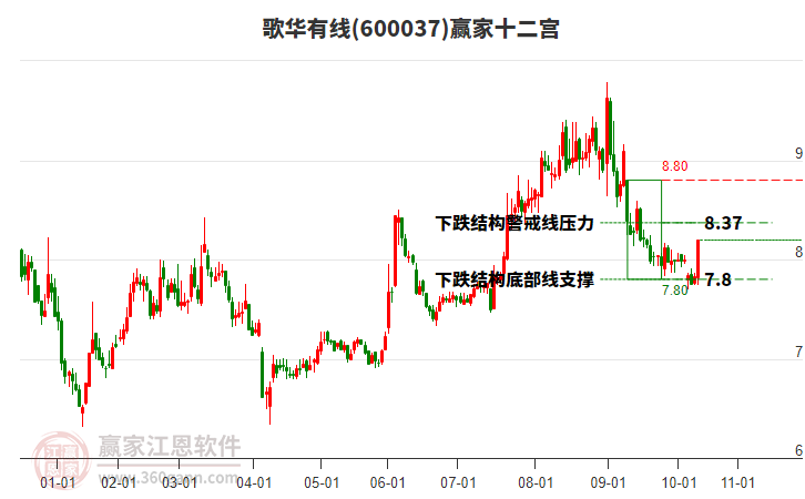 600037歌華有線根據(jù)贏家江恩極反通道趨勢工具展示,上方壓力位7.8727,下方支撐位6.9143。600037歌華有線處于贏家江恩多頭中期回調形態(tài),11月19日發(fā)出江恩筑頂信號后,經(jīng)過20日,今日