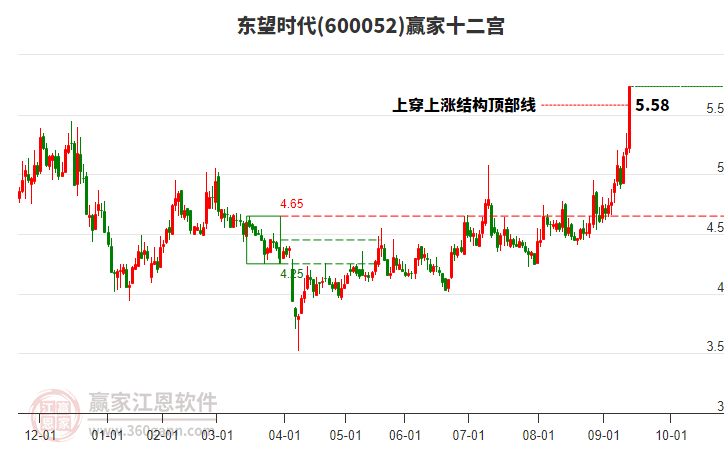 600052東望時代根據(jù)贏家江恩極反通道趨勢工具展示,上方壓力位5.4743,下方支撐位4.8041。600052東望時代處于贏家江恩多頭主線形態(tài),從1月19日形成底分型后持續(xù)上攻,今日突破前高形成初