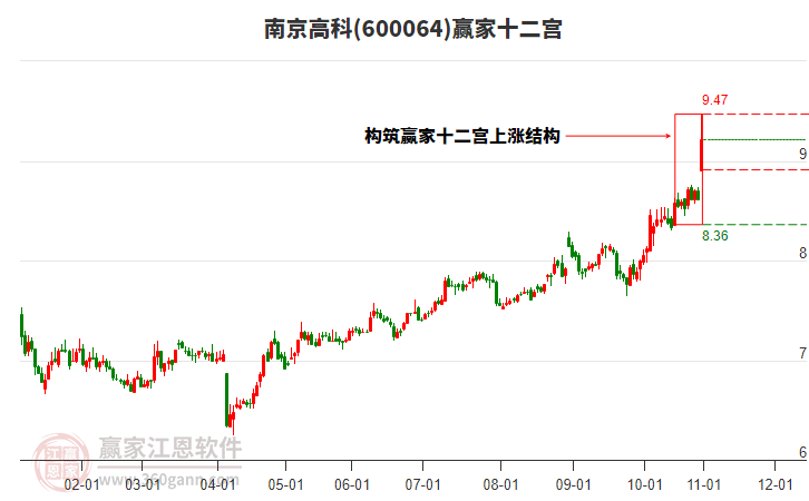 當(dāng)天南京高科最高價(jià)9.47上穿了贏家極反通道工具上方紅色外軌線,受到上方紅色外軌線強(qiáng)力壓制,最終收盤停留在在上方紅色外軌線與藍(lán)色外軌線上方的超強(qiáng)通道區(qū)域。南京高科近10個(gè)交易日漲幅10.02%。