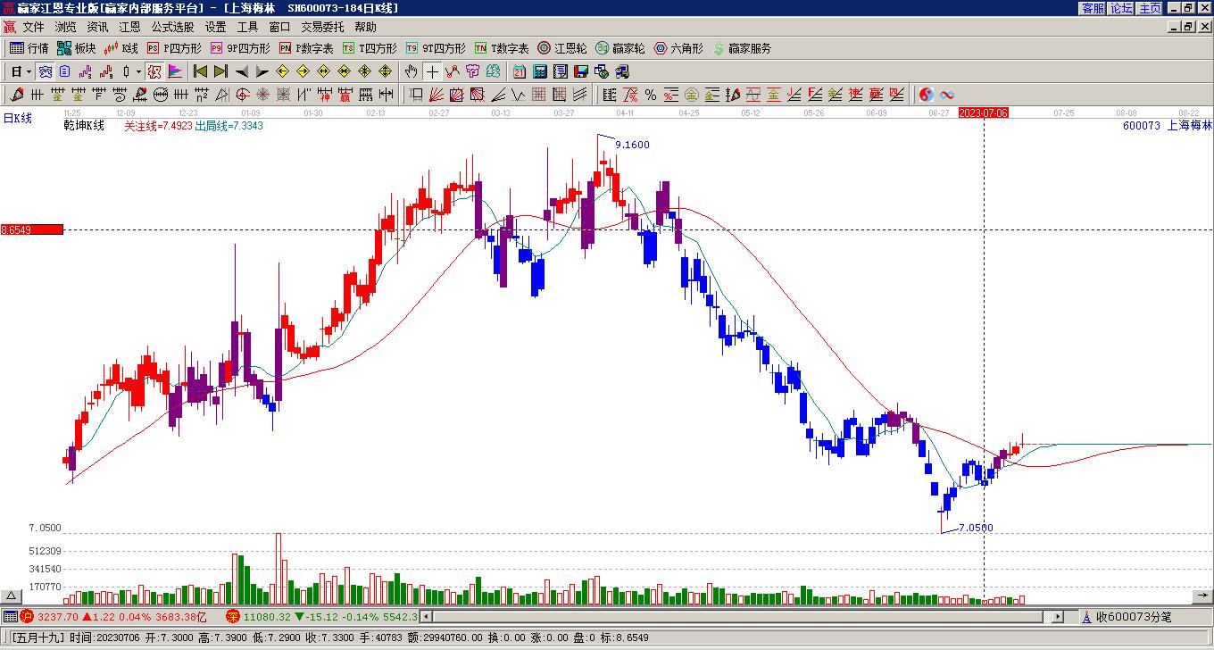 10月10日600073光明肉業(yè)以中陽線收盤,今天是關(guān)鍵時間窗口
