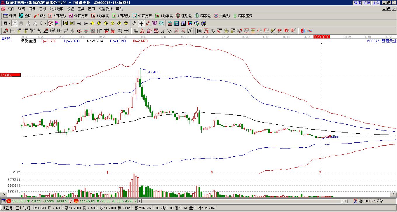 新疆天業(yè)今日漲停,受極反通道強(qiáng)勢(shì)通道線壓制