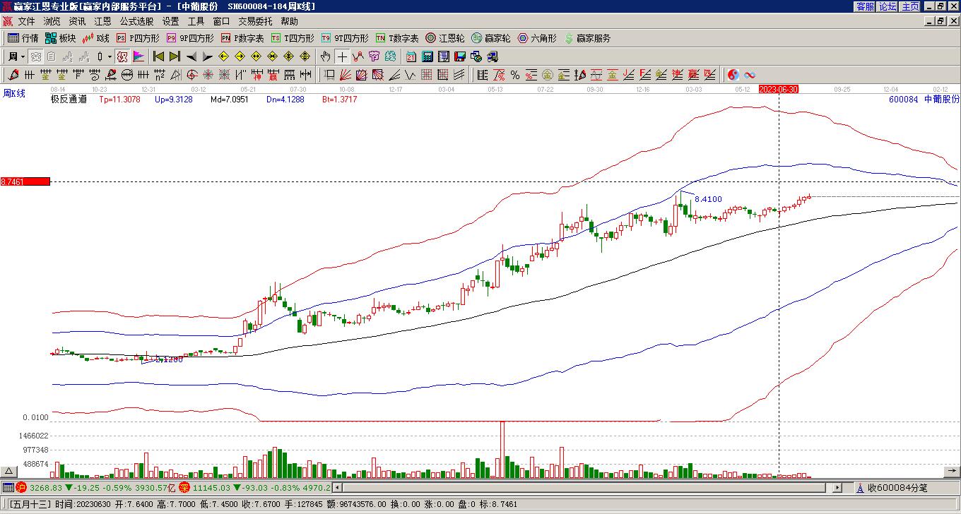 中信尼雅今日再次漲停,突破極反通道強(qiáng)勢(shì)外軌線