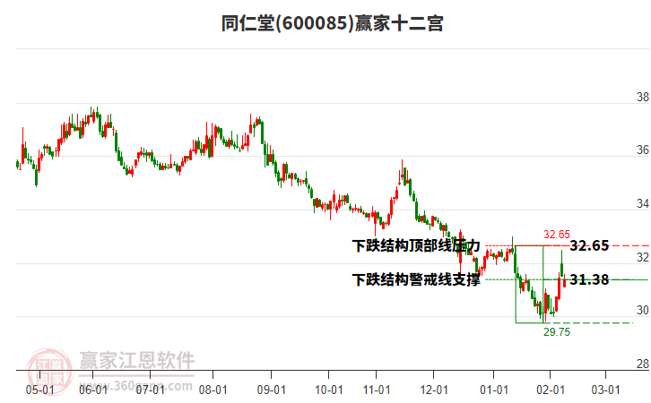 同仁堂(600085)處于贏家江恩空頭主線形態(tài),從1月13日形成頂分型后持續(xù)下跌,今日形成短期初次筑頂信號,短期多頭趨勢已被破壞,中期多頭反彈趨勢延續(xù),但長期處于下跌中。同仁堂(600085)根據(jù)贏家
