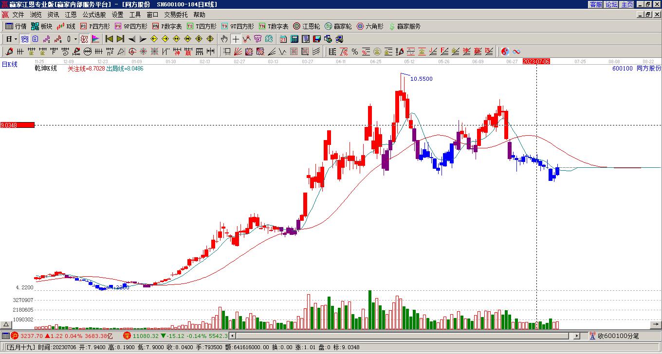 同方股份處于贏家江恩多頭主線形態(tài),11月21日發(fā)出江恩筑頂信號后,經(jīng)過34日,今日再次發(fā)出江恩底分型并發(fā)出江恩筑底信號,中長期目前都處于回調(diào)中。同方股份根據(jù)贏家江恩極反通道趨勢工具展示,上方壓力位8.