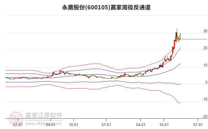 600105永鼎股份處于贏家江恩多頭主線形態(tài),1月27日發(fā)出江恩筑頂信號(hào)后,經(jīng)過(guò)2日,今日再次發(fā)出江恩底分型并發(fā)出江恩筑底信號(hào),中長(zhǎng)期多頭趨勢(shì)依舊保持。600105永鼎股份根據(jù)贏家江恩極反通道趨勢(shì)工具
