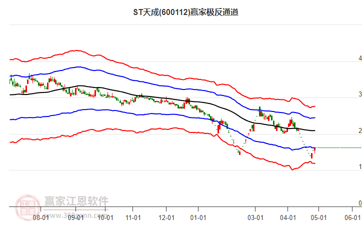 依據(jù)贏家江恩系統(tǒng)趨勢(shì)工具極反通道分析判斷*ST天成600112運(yùn)行在生命線以下弱勢(shì)區(qū)域,根據(jù)規(guī)則該股短線輕倉(cāng)參與,股價(jià)跌至弱勢(shì)外軌線后波段再結(jié)合其它工具信號(hào)建倉(cāng)。應(yīng)用口訣是:生命線上強(qiáng)勢(shì)走,生命線下難抬頭;紅黃兩條外軌線,壓力支撐顯勢(shì)頭。