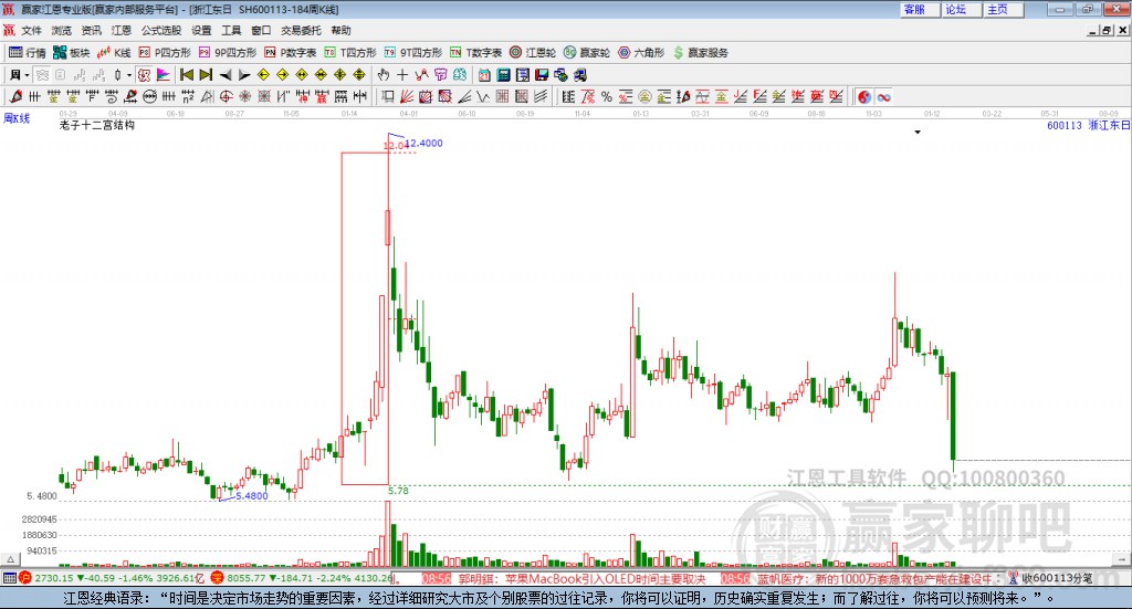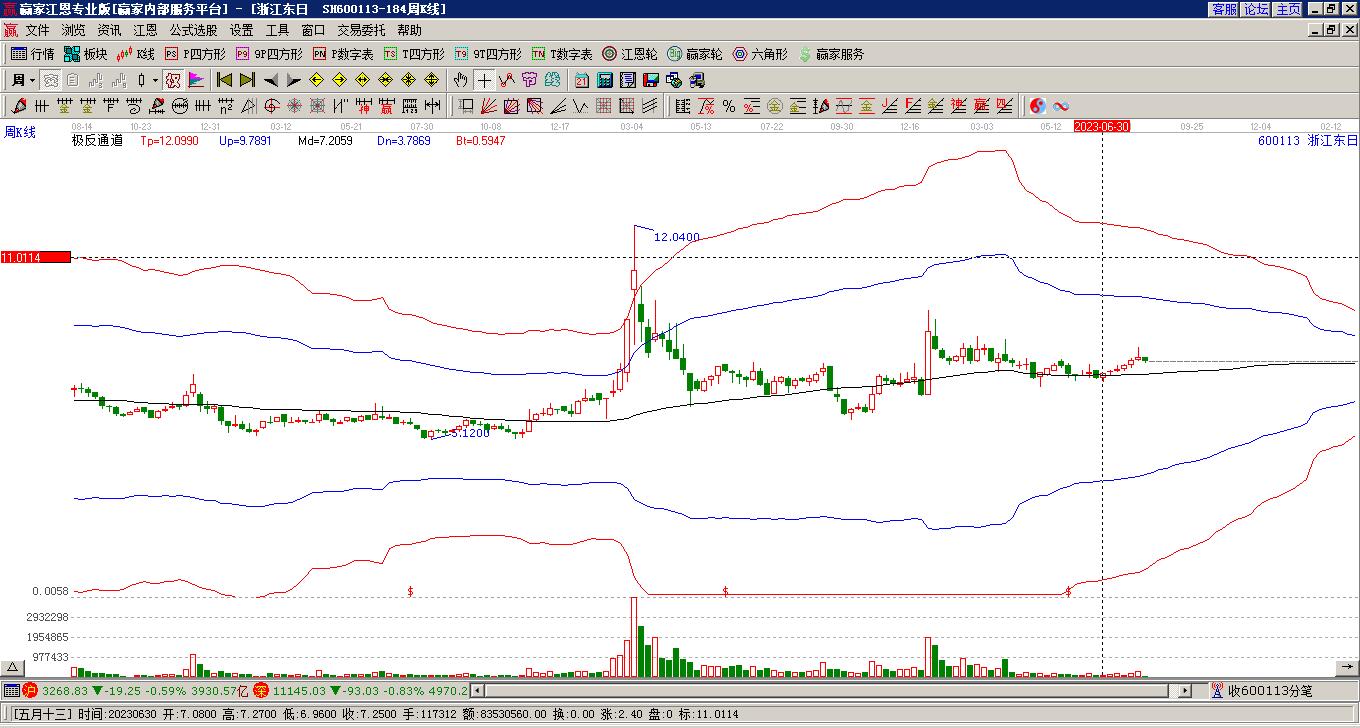 600113浙江東日處于贏家江恩多頭次主線形態(tài),12月8日發(fā)出江恩筑底信號后,經(jīng)過23日,今日形成短期筑頂信號,短期多頭趨勢已被破壞,中長期多頭趨勢依舊保持。600113浙江東日根據(jù)贏家江恩極反通道趨