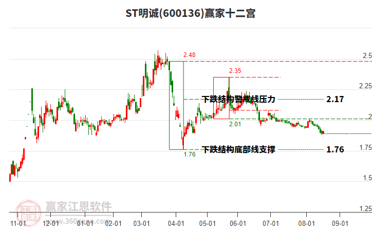 600136ST明誠目前漲停,走出獨立行情。600136ST明誠截止目前突破極反通道生命線,根據(jù)贏家江恩極反通道趨勢工具展示,上方壓力位2.0444,下方支撐位1.8697。ST明誠今日高開0.0元,