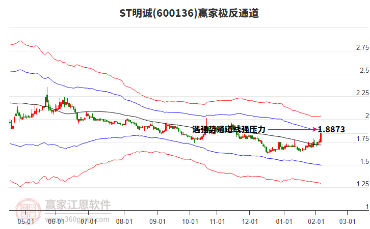 ST明誠目前漲停,與所屬行業(yè)概念下股票形成聯(lián)動效應。ST明誠截止目前突破極反通道生命線,根據(jù)贏家江恩極反通道趨勢工具展示,上方壓力位2.0323,下方支撐位1.8787。ST明誠今日低開,截止目前漲停