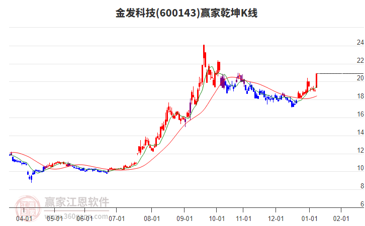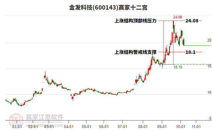 金發(fā)科技(600143)今日漲停,上穿江恩價格循環(huán)線工具關鍵點位20.48元
