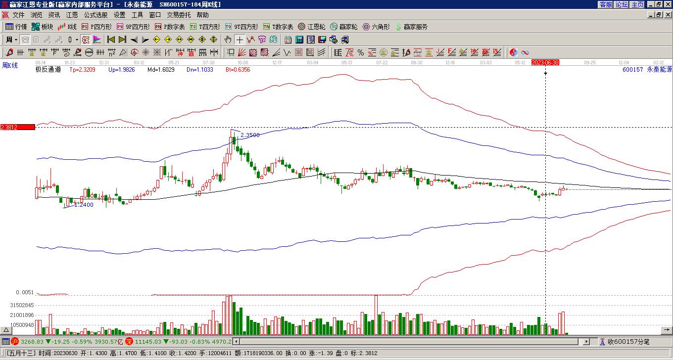 永泰能源處于贏家江恩空頭主線形態(tài),從1月29日形成頂分型后持續(xù)下跌,今日形成短期初次筑頂信號,短期多頭趨勢已被破壞,中長線均在空頭下跌趨勢中。永泰能源根據(jù)贏家江恩極反通道趨勢工具展示,上方壓力位1.6