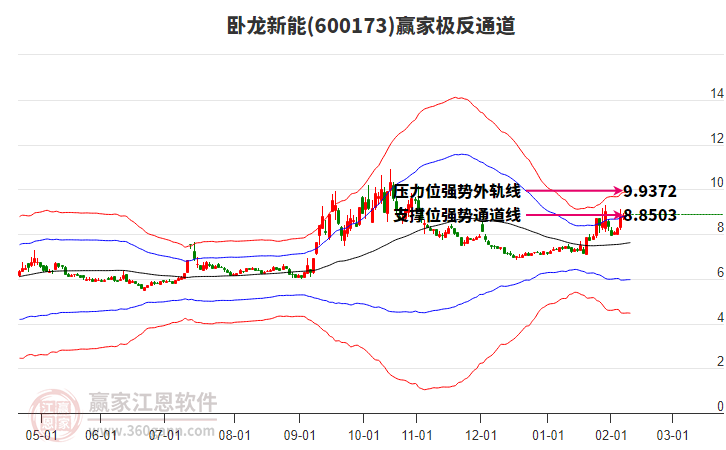 臥龍新能今日漲停,突破極反通道強(qiáng)勢(shì)通道線