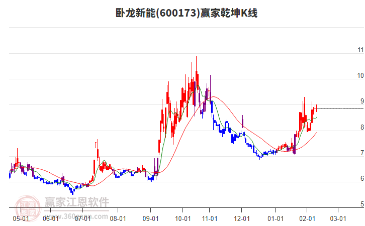 臥龍新能今日漲停,贏家工具展示0星升為5星處于多頭區(qū)域