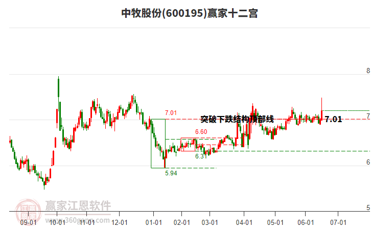 2月13日股價處在2025年11月14日形成的上漲結(jié)構(gòu)底部線與警戒線之間,今日股價微跌0.65%,目前處于底部線上方。依據(jù)贏家十二宮多空能量守恒規(guī)則,上漲結(jié)構(gòu)底部線位置是多空能量轉(zhuǎn)換的一個關(guān)鍵位置。如底部線7.64支撐不破,由多方能量主導(dǎo)上攻,在警戒線7.91尋找多空能量平衡。如跌破底部線,空方動能占據(jù)主導(dǎo),打開新的下跌空間。