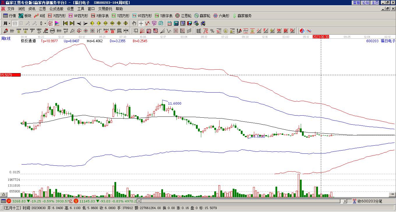 福日電子處于贏家江恩多頭中期回調(diào)形態(tài),11月18日發(fā)出江恩筑頂信號后,經(jīng)過21日,今日再次發(fā)出江恩底分型并發(fā)出江恩筑底信號,中期多頭反彈趨勢延續(xù),但長期處于回調(diào)中。福日電子根據(jù)贏家江恩極反通道趨勢工具