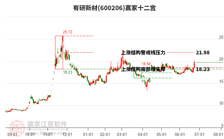 有研新材(600206)根據(jù)贏家江恩極反通道趨勢(shì)工具展示,上方壓力位20.948,下方支撐位18.0618。有研新材(600206)處于贏家江恩多頭中期回調(diào)形態(tài),從12月17日形成底分型后持續(xù)上攻,今
