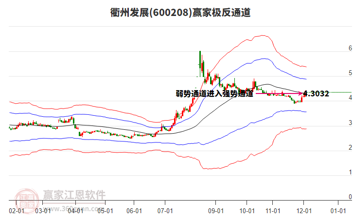 依據(jù)贏家江恩系統(tǒng)趨勢工具極反通道分析判斷衢州發(fā)展600208運行在生命線以上強勢區(qū)域,根據(jù)規(guī)則該股可短線、波段結合操作;結合物極必反的原理通過分鐘圖做盤中差價,應用口訣是:生命線上強勢走,生命線下難抬頭;紅黃兩條外軌線,壓力支撐顯勢頭。