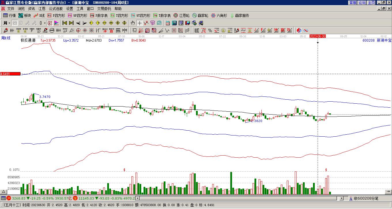 依據(jù)贏家江恩極反通道趨勢工具展示,本周股價處于生命線上強勢通道,本周收盤價3.64,自近期通道內(nèi)低點3.57上漲至本周,到達生命線3.6137點上方,短期關(guān)注此線支撐,如支撐不破,保持在強勢通道內(nèi),波段繼續(xù)看多,有望挑戰(zhàn)藍色上軌線。若跌破生命線3.6137,進入弱勢通道,調(diào)整周期繼續(xù)延長。