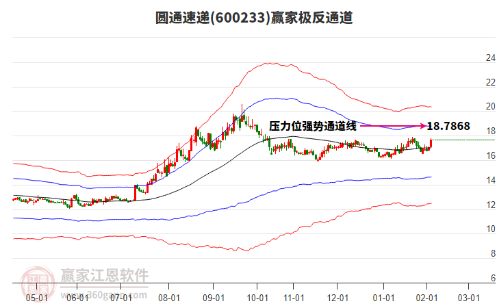 依據(jù)贏家江恩系統(tǒng)趨勢(shì)工具極反通道分析判斷圓通速遞600233運(yùn)行在生命線以下弱勢(shì)區(qū)域,根據(jù)規(guī)則該股短線輕倉參與,股價(jià)跌至弱勢(shì)外軌線后波段再結(jié)合其它工具信號(hào)建倉。應(yīng)用口訣是:生命線上強(qiáng)勢(shì)走,生命線下難抬頭;紅黃兩條外軌線,壓力支撐顯勢(shì)頭。