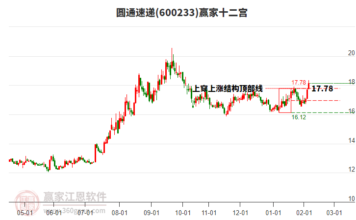 圓通速遞(600233)處于贏家江恩多頭次主線形態(tài),從12月12日形成頂分型后持續(xù)下跌,重心下移,今日跌破前低形成短期初次筑頂信號(hào),短期多頭趨勢(shì)已被破壞,中期多頭趨勢(shì)延續(xù),但長(zhǎng)期處于回調(diào)中。圓通速遞(
