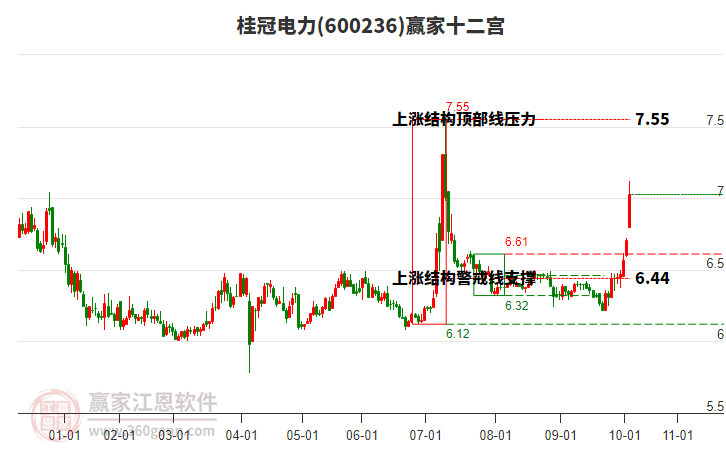當天600236桂冠電力最高價8.43挑戰(zhàn)了贏家極反通道工具藍色外軌線,受到藍色外軌線強力壓制,最終收盤停留在在藍色外軌線與生命線上方的強勢通道區(qū)域。600236桂冠電力近10個交易日漲幅2.19%。