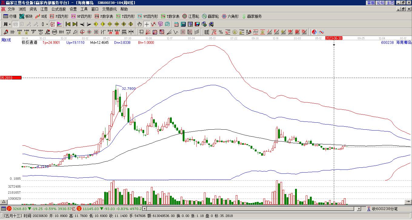 *ST椰島處于贏家江恩空頭主線形態(tài),今日重心持續(xù)下移,短期延續(xù)下跌趨勢(shì),7月8日發(fā)出中期江恩筑底信號(hào)后,經(jīng)過(guò)211日,今日形成中期筑頂信號(hào),注意風(fēng)險(xiǎn)規(guī)避。*ST椰島根據(jù)贏家江恩極反通道趨勢(shì)工具展示,上